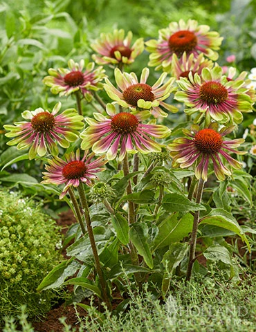 Green Twister Coneflower is an eye catching variety of coneflower with twistinggreen petals that have pink and purple accents in the center of the blooms. Growing 2-3′ tall these free flowering perennials work best in the middle to back of the perennial border. Coneflower perform best in full sun with soil that drains well, and are drought tolerant once they become established. Green Twister attracts butterflies to your garden, and is also deer resistant. Add this unique perennial to your sunny garden areas this spring for blooms all summer!