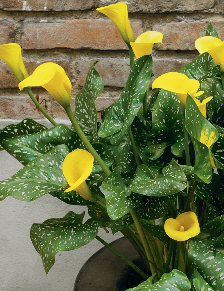 This collection of juicy orange, purple and yellow calla’s is great for a tropical feel in your garden beds and containers. All of the calla’s in this collection are great for cut flowers, and border plantings as they generally will grow about 15″ tall.
