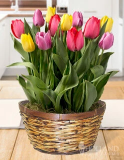 Somewhere Over the Rainbow are colorful blooming tulips in an indoor bulb garden! Enjoy a mix of colorful yellow, pink and red tulips blooming in a ready to grow indoor bulb garden.