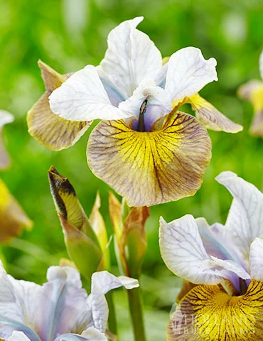 Peacock Butterfly Uncorked Iris is a truly exquisite Siberian Iris! Blooms feature shades of yellow, periwinkle, deep purple and have an overall smokey appearance to them. This upright perennial has attractive grass like foliage which looks attractive in the garden all season. Makes a great cut flower, and mixes easily into the perennial garden.