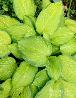 This versatile and highly acclaimed hosta was awarded the 2006 Hosta of the Year Award for plenty of good reasons. Stained Glass hosta, features glistening golden to green variegated leaves that sparkle in the sun. Yes, we said sparkle in the sun, as this hosta is sun tolerant! It is great for areas of partial sun, if planted in full sun additional moisture may be required for best results. Other great features of Stained Glass hosta are the sweetly fragrant large 3″ diameter white blooms in late Summer and it’s high slug resistance. Don’t miss out on this beautiful and diverse variety, a true favorite amongst hosta fanatics.