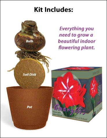 Star of Holland Indoor Growing Amaryllis with 1 Amaryllis bulb per gift box. Comes complete in colorful box, can be used as a gift or for enjoyment in your own home! May take 6-8 weeks to bloom.